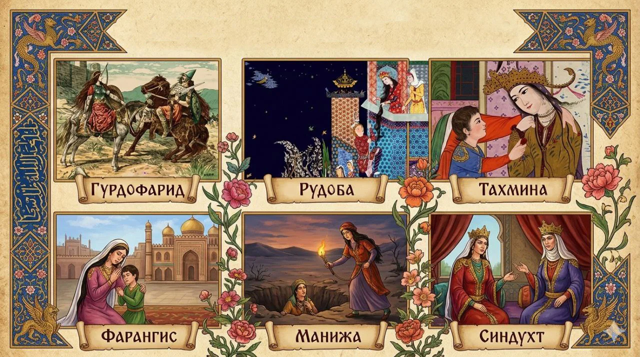 Хулоса, Фирдавсии ҳаким дар «Шоҳнома» образи занонро хеле барҷаста офарида, хислату характери ҳар кадомеро ба таври хос ва такрорнашаванда ба риштаи тасвир мекашад. Бонувони «Шоҳнома» бо озодагӣ, некманишӣ, хирадварзӣ, покизагӣ ва шуҷоату қаҳрамонӣ машҳуранд. Ҳамон сифатҳое, ки имрӯз ҳам ҳастии бонувони тоҷикро зеб мебахшад ва ононро чун идомадиҳандаи кору пайкори ниёкони хеш ба ҷаҳониён муаррифӣ месозад.